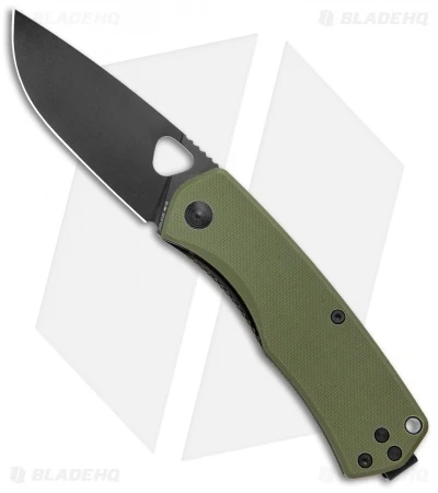 - VG-10 blade steel with a black finish and drop point blade shape.