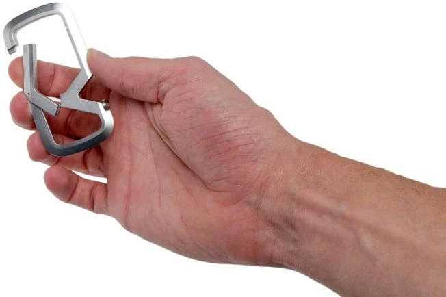 The James Brand Mehlville is a solid titanium carabiner that will be the perfect companion for your keys or tools. You easily open the Mehlville by pushing the snap hook inwards. Once the keys are in place you can push the carabiner inwards again. As such the keys will move towards the second part of the carabiner where they are safe and won’t easily fall out. This carabiner is also enhanced with an innovative bottle opener with an interchangeable steel disc. This steel disc is attached to the handle with a screw and can, if necessary, be exchanged. Because this disc is made from hardened stainless steel it won’t wear out as quickly as titanium. Practical if you want to open a bottle at the end of the day!